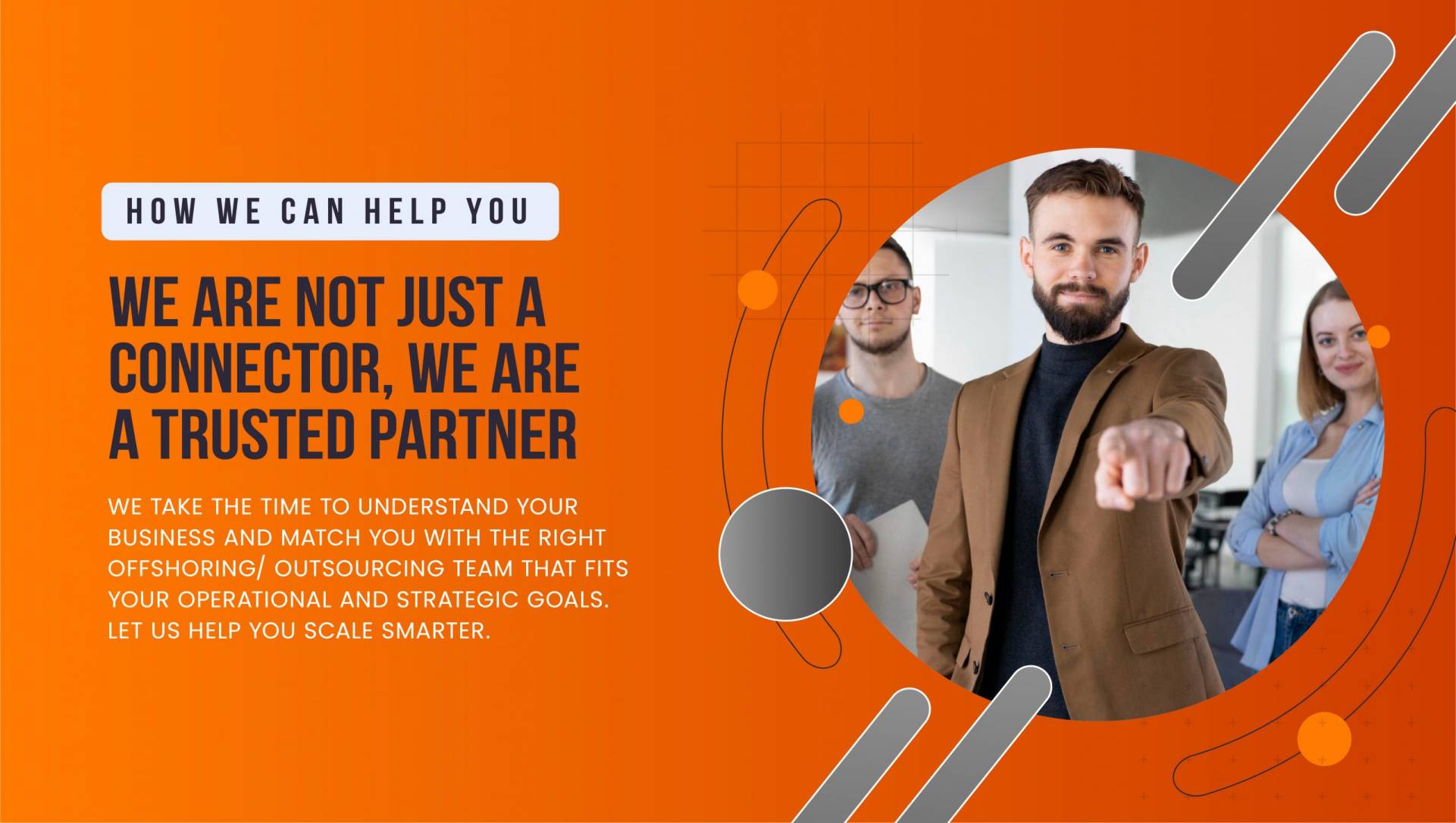 We take the time to understand your business and match you with the right Offshoring/ outsourcing team that fits your operational and strategic goals.